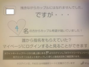 ホワイトキーには中間印象タイムがあります。 これは何かというと、 自分が気に入った女性を、 第1候補~第6候補までを記入する時間です。 ホワイト …
